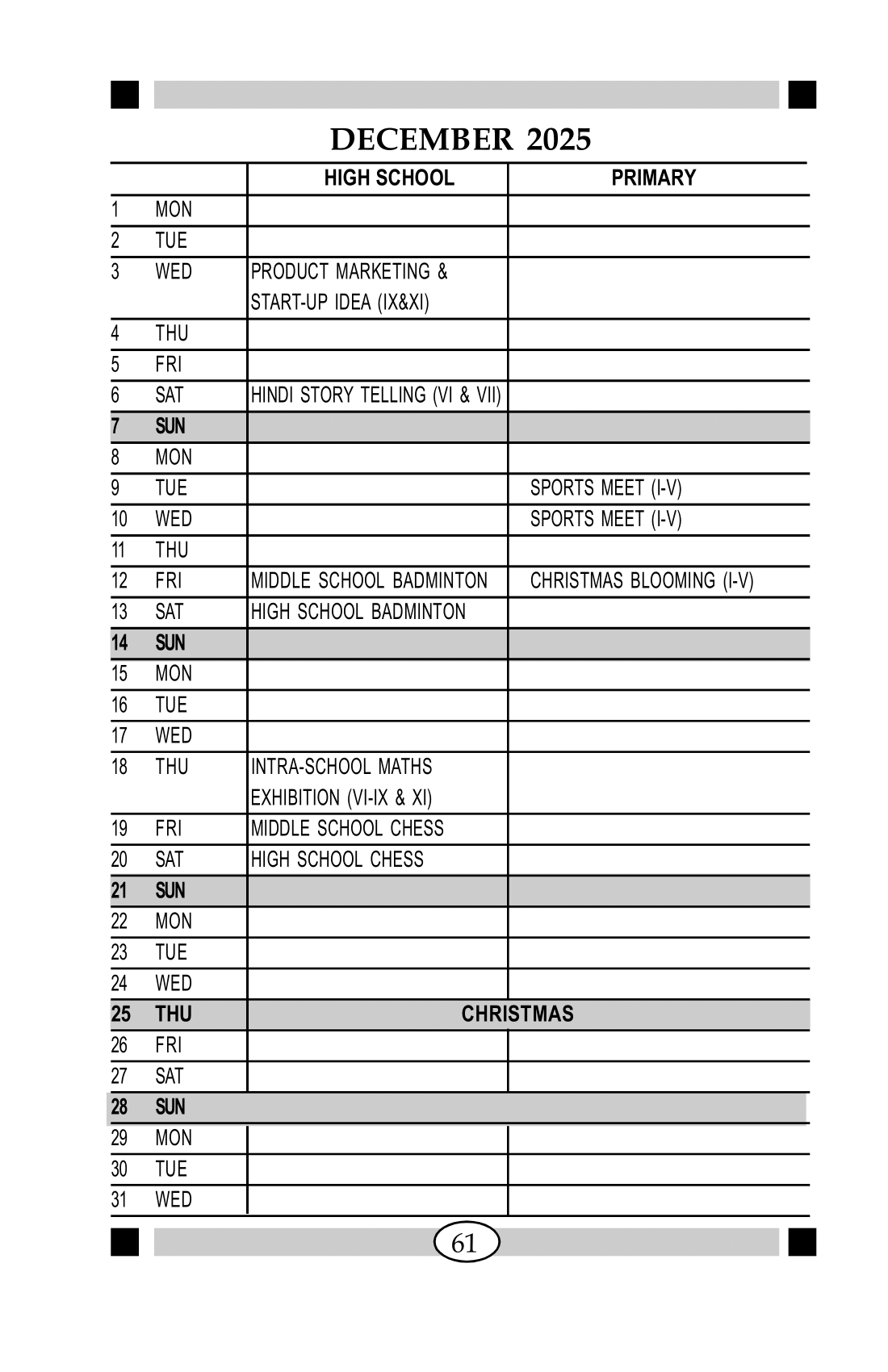 ๐ Winter Vacation is from 31 December 2025 to 04 January 2026