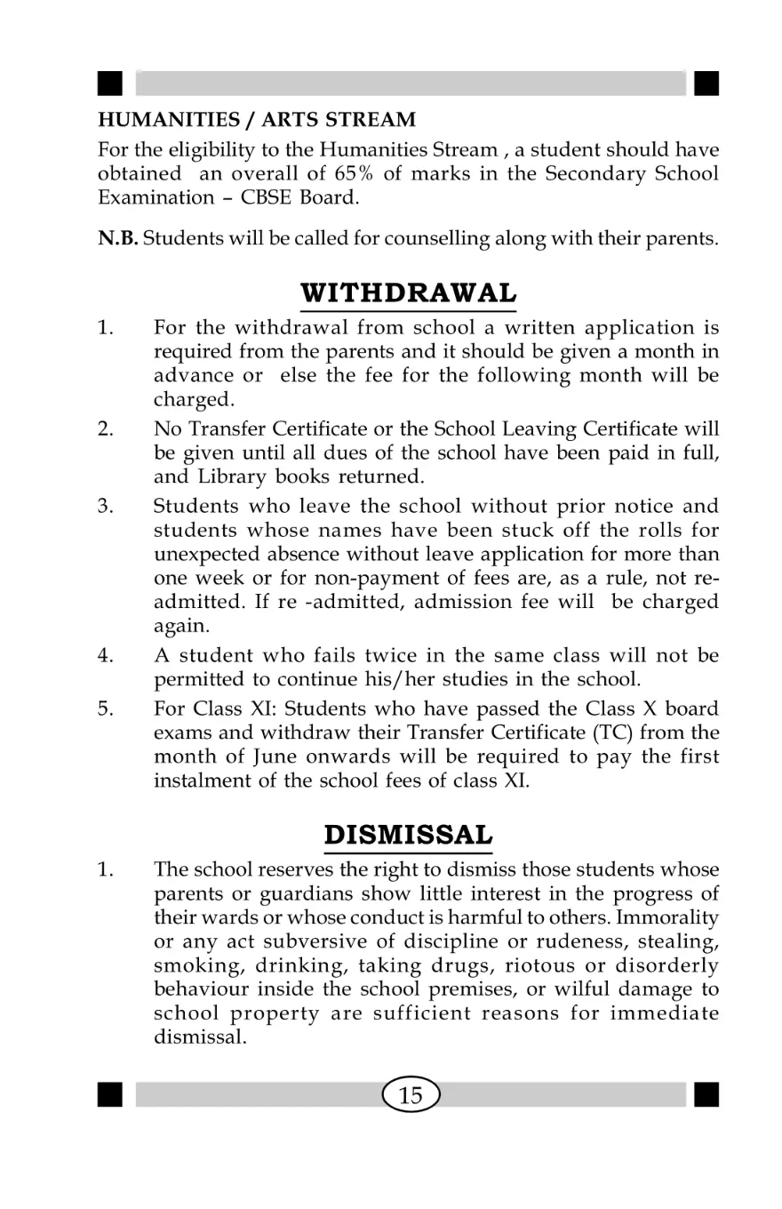 Admission & Withdrawal