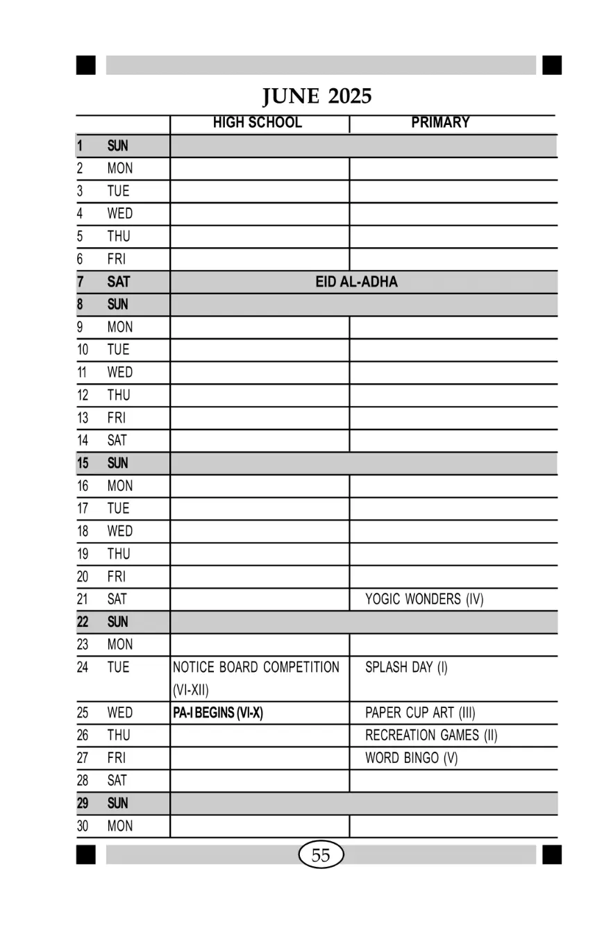 Academic Calender