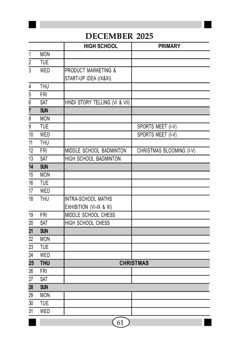 ๐ Winter Vacation is from 31 December 2025 to 04 January 2026