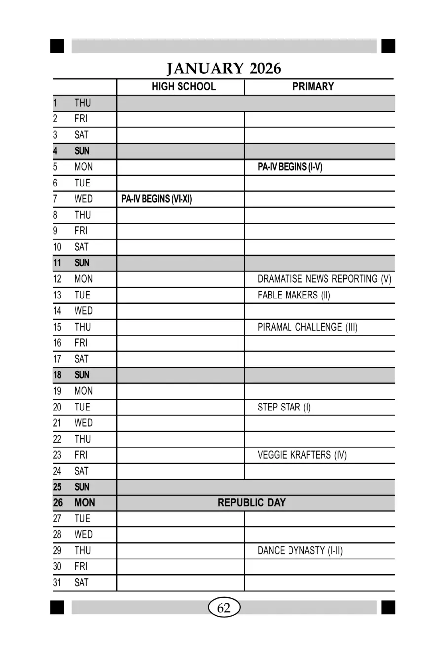 The school has shifted to the Winter Timetable, effective from Wednesday, 7th January 2026